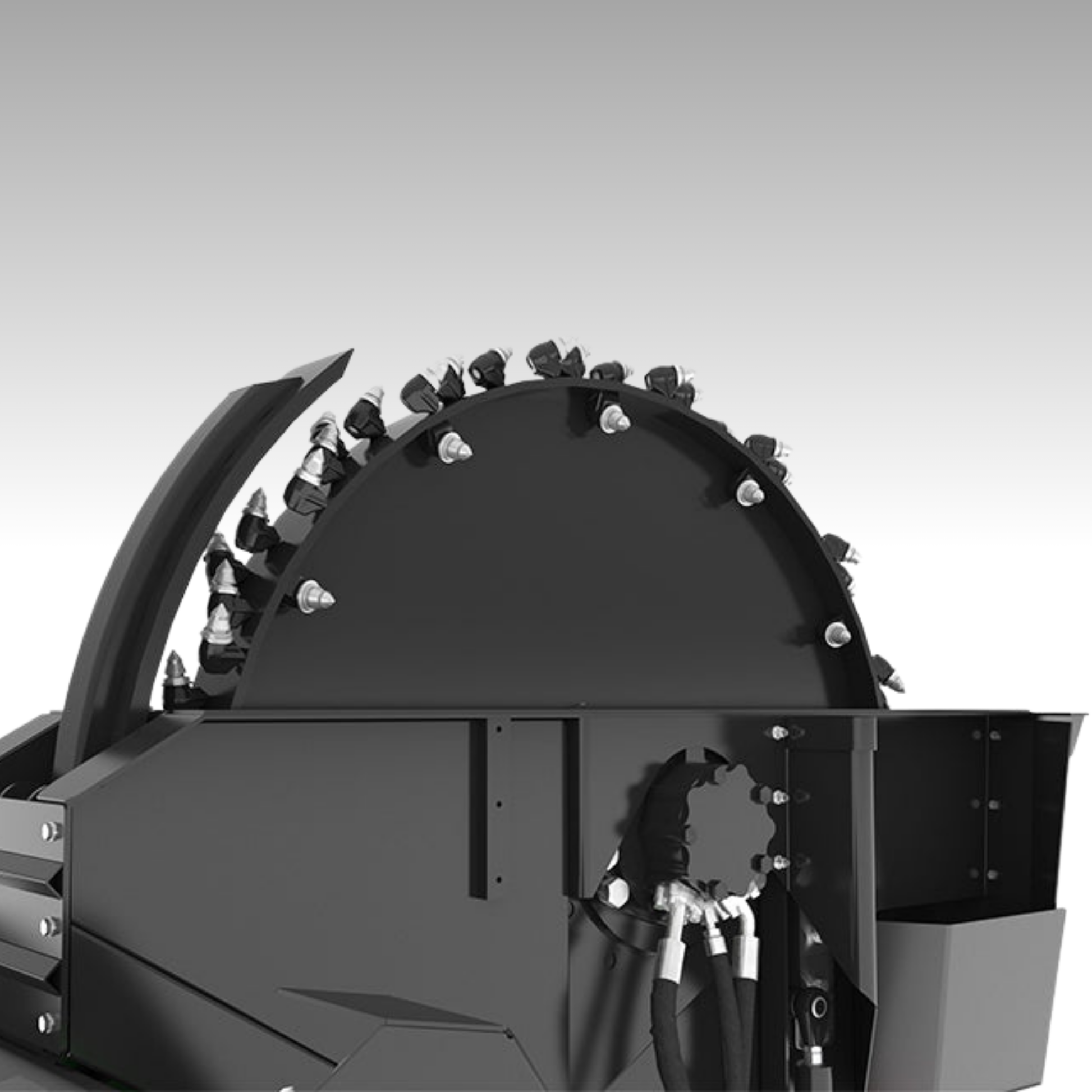 The heavy-duty cutter wheel carries replaceable, bolt-on carbide teeth that pop out with a single pin for rapid tooth change, keeping downtime low and rental yards profitable. Durable cutter holders and a sealed bearing hub create a long-life cutter wheel that shrugs off high radial loads and vibrations, even in mining or quarry settings.
